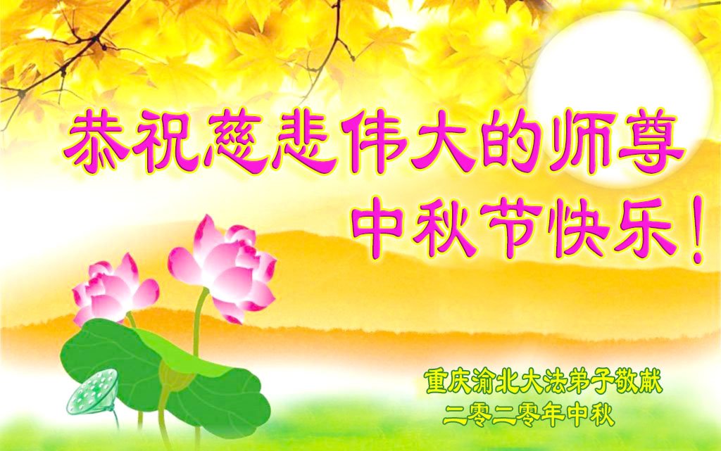 弟子们感恩师父的慈悲苦度,弟子们唯有精進以报师恩。 2020年9月28日 重庆市巴南区一弟子代原地区三位大法弟子恭祝师尊中秋节快乐!