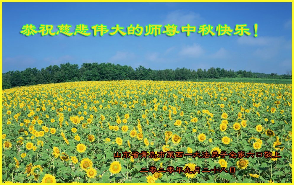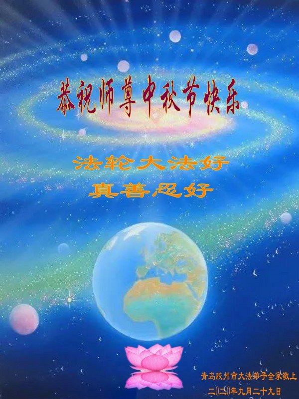 【明慧网二零二零年十月一日】 山东省青岛市胶州市全体大法弟子恭祝师尊中秋节快乐!
