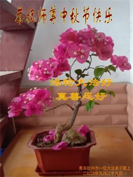师尊好, 恭祝师尊中秋快乐! 青岛市姐妹大法弟子敬上 二零二零年九月二十七日 山东青岛大法弟子恭祝师尊中秋快乐!