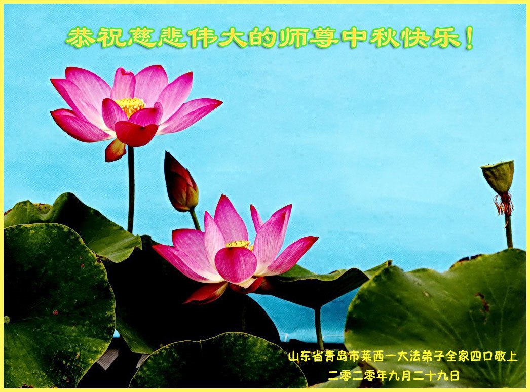 山东省青岛大法弟子全家恭祝慈悲伟大的师父中秋节快乐!