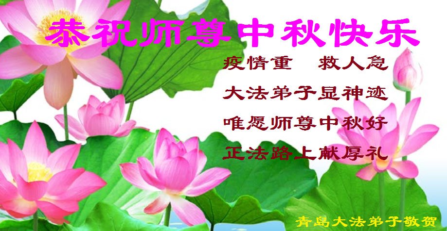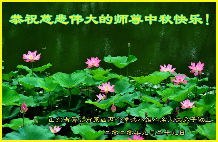 弟子要努力精進,跟上师父正法進程。 山东省青岛黄岛全体大法弟子恭祝师尊中秋节快乐!