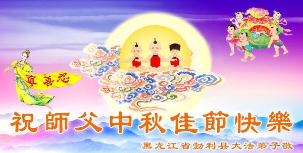 古月照今人 秋风化善缘 中秋佳节日 心聚祝团圆 正念随身行 心明解百愁 师慈护弟子 难报师洪恩 黑龙江省勃利镇蔬菜村荣胜二队大法弟子祝伟大的师父中秋节快乐!