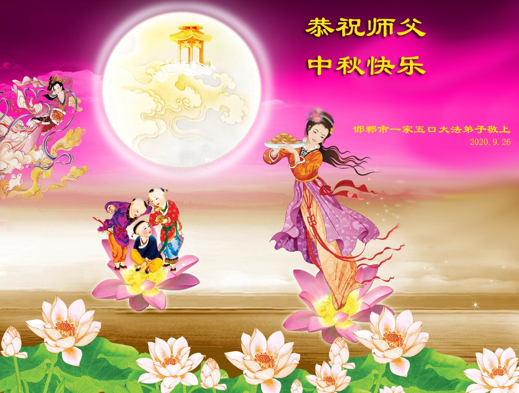 弟子感谢师父的救度之恩,弟子不辜负师父的保护与期望! 河北省衡水市景县一大法弟子代表全家及亲朋好友祝愿师尊中秋节快乐!师父辛苦了,叩谢师尊!