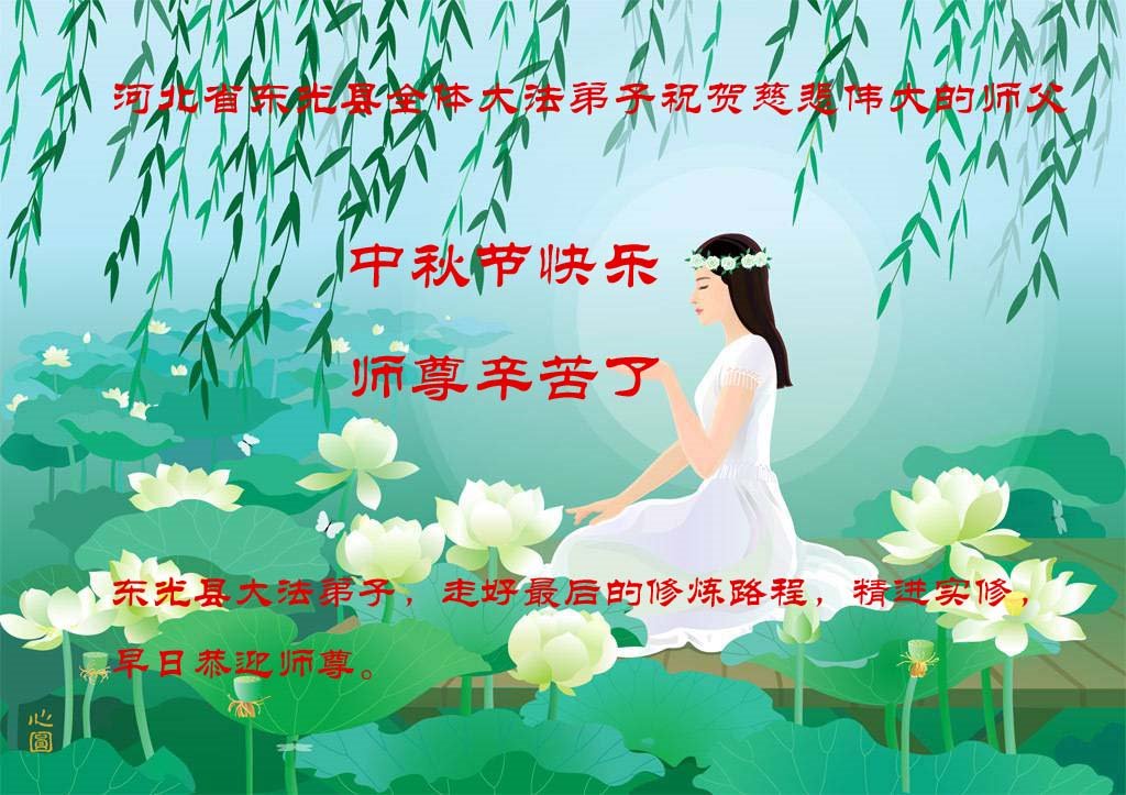 弟子感恩师尊的慈悲点悟和加持,请师尊放心,在剩下不多的时间里,我们一定修好自己,多救人。 河北省沧州市东光县全体大法弟子恭祝师尊中秋节快乐!