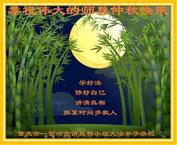【明慧网二零二零年十月一日】 重庆市一面对面讲真相小组大法弟子恭祝慈悲伟大的师尊中秋快乐!