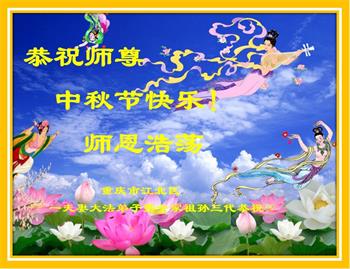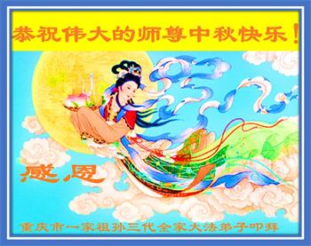 重庆市一祖孙三代全家大法弟子恭祝慈悲伟大的师尊中秋快乐!