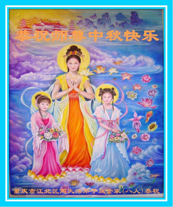 重庆市江北区两大法弟子及全家(八人)恭祝慈悲伟大的师尊中秋快乐!