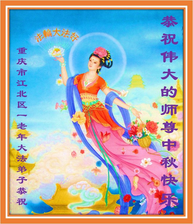 重庆市江北区一老年大法弟子恭祝慈悲伟大的师父中秋佳节快乐!