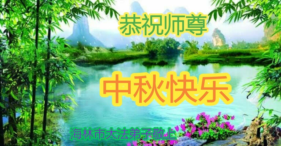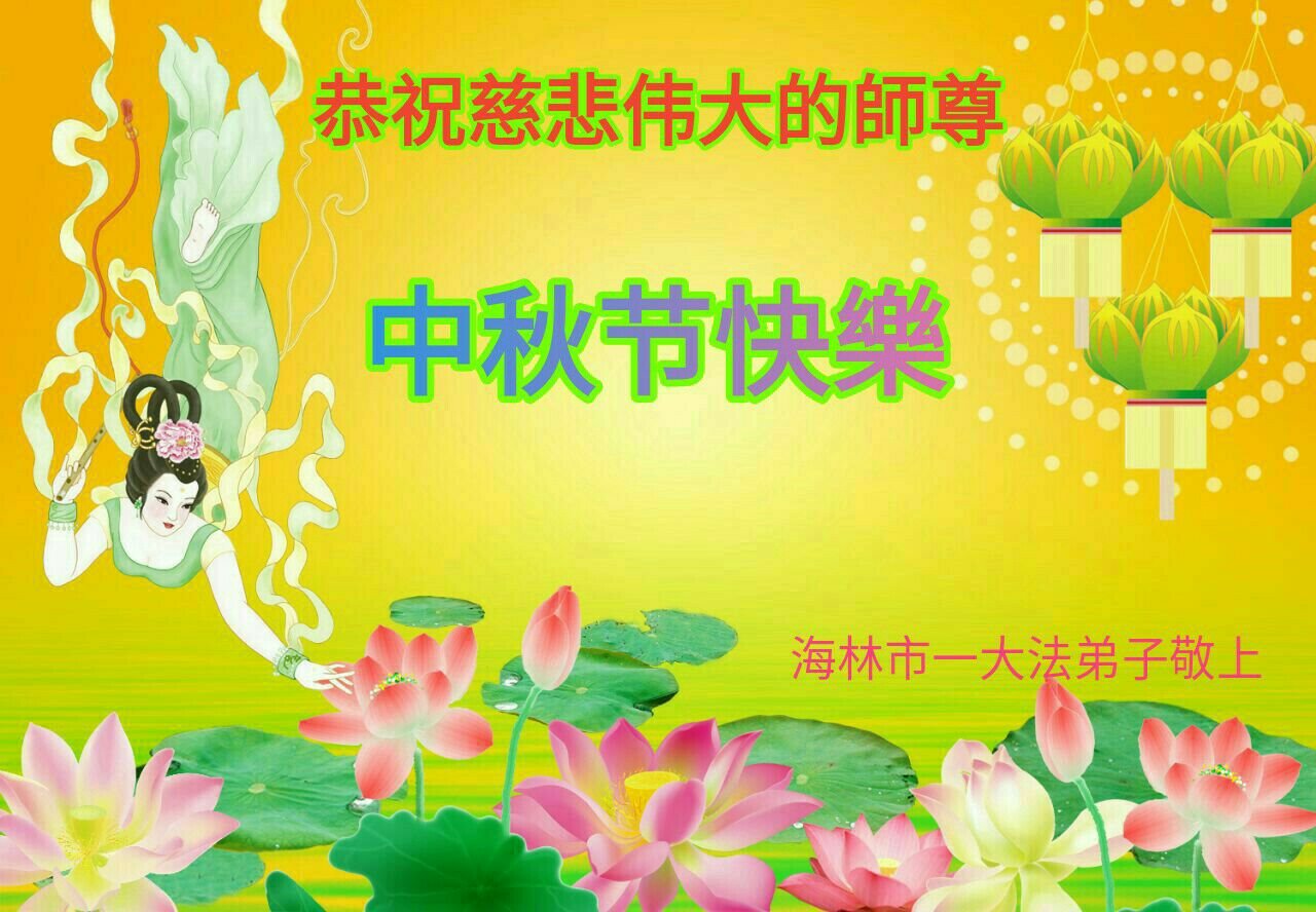 师尊您辛苦了!二十多年来,您为弟子操了很多的心,您所给予弟子的太多太多!弟子无以回报!用尽人类的语言也表达不尽弟子对师尊的感恩之情!您时时看护着弟子,保护着弟子,净化弟子的身心。保护着弟子从人到神的脱胎换骨中,您的无量慈悲付出,不是生命能够说的清的!在这宇宙巨变的历史时期,在这转瞬即逝的珍贵时刻,弟子要勇猛精進,不辜负师尊的期盼,学好法,修好自己,做好三件事,兑现自己的史前大愿,救度更多的世人与众生,跟师尊回家! 二零二零年九月 黑龙江省个体工商户全体大法弟子祝师尊中秋快乐!