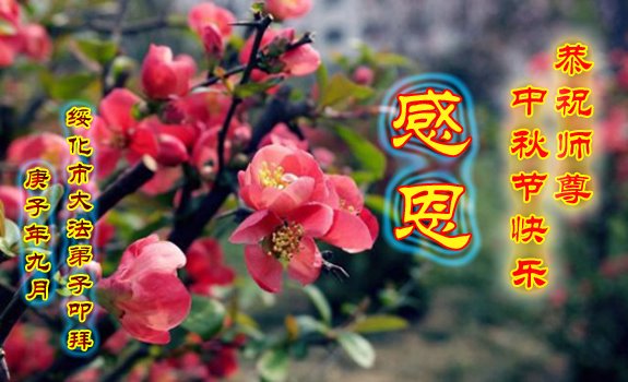 在最后的救人的正法修炼的紧迫时间里,我要勇猛精進,让师尊少操心,修好自己,做好三件事,多救人,圆满随师还。 二零二零年九月二十五日 黑龙江省绥化市母女大法弟子恭祝慈悲伟大师尊中秋节快乐!