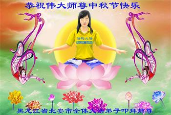 弟子一定走师父安排的路,做一个真修弟子,修好自己多救人,主动配合,形成整体,兑现誓约! 黑龙江省黑河市北安市全体大法弟子恭祝伟大师尊中秋节快乐!
