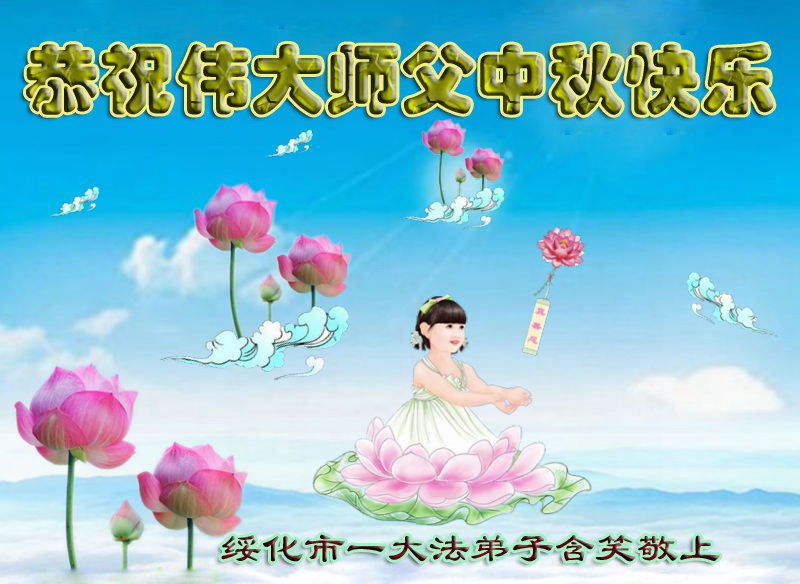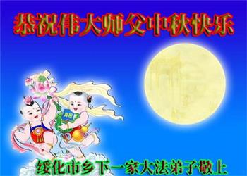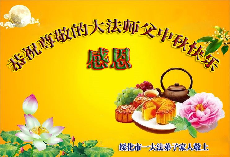 大法师父您好!我是您弟子的家人,虽没修炼大法,但我深知“一人炼功全家受益”,在家人修炼的过程中,我过去好多病都好了!我深知我是大法受益者,特此感恩大法师父。恭祝大法师父中秋快乐!盼望大法师父早日回到中国大路来。 黑龙江省绥化市一学法小组大法弟子恭祝慈悲伟大师父中秋快乐!