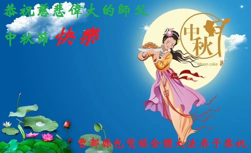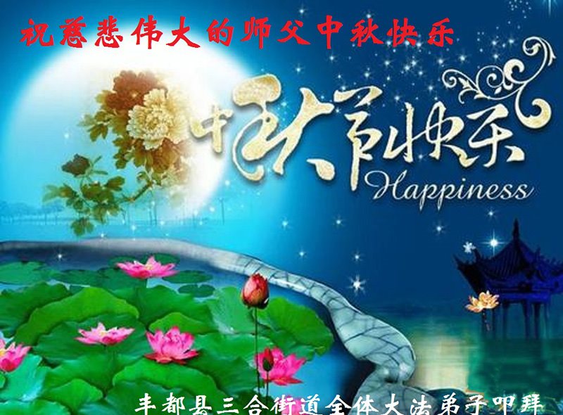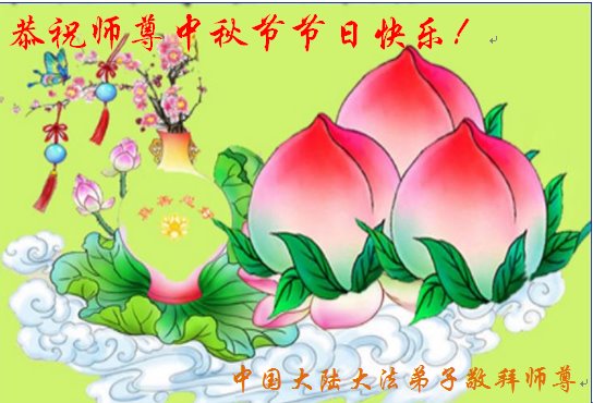 每逢佳节思亲人,在这中秋来临之际,我们向远隔重洋慈悲伟大的师父致以节日的祝愿和亲切的问候!恭祝师父中秋快乐!我们敬遵师父的教诲,抓紧时间多救人、快救人,让师父放心。弟子再一次祝师父节日快乐!弟子全家及我的姐姐叩拜师父! 大陆大法弟子恭祝师尊中秋节快乐!