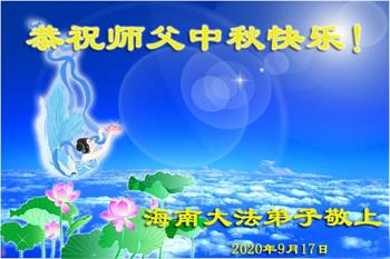 海南大法弟子敬上 2020年9月17日 海南一大法弟子恭祝慈悲伟大的师尊中秋节快乐!