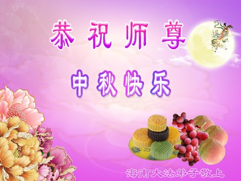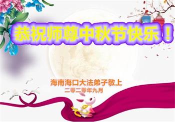 弟子一定学好法,做好三件事,修好自己多救人,不辜负恩师的慈悲救度! 海南省海口市流离在外的大法弟子恭祝师父中秋节快乐!