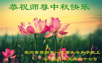 【明慧网二零二零年十月一日】 贵州省贵阳市一家俩大法弟子恭祝师尊中秋快乐!