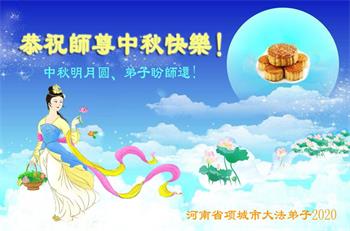 师父您好,祝您中秋快乐! 以后我要做的更好,更加精進。谢谢师父,祝您中秋快乐! 二零二零年九月二十八日 河南省郑州市新密市两个学法小组大法弟子祝师尊中秋节快乐!