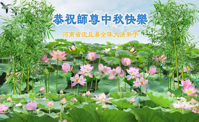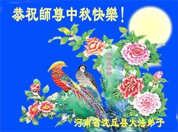 河南沈丘全体大法弟子向师父问好!恭祝师尊中秋快乐!听师父的话,做好三件事,多救人。 河南省周口市沈丘县大法弟子恭祝师尊中秋快乐!