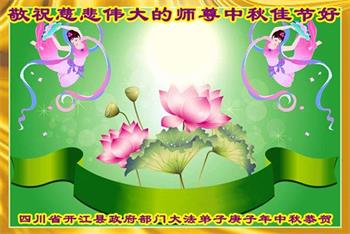 黑龙江省哈尔滨市宾县政府各机关单位大法弟子恭祝慈悲伟大的师父中秋节快乐! 四川省达州市开江县政府部门大法弟子恭祝慈悲伟大的师尊中秋佳节快乐!