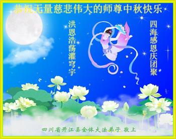 四川省达州市开江县全体大法弟子恭祝无量慈悲伟大的师尊中秋快乐!