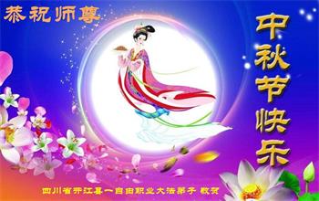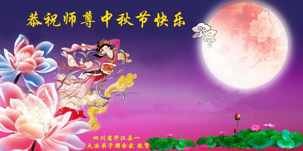 四川省遂宁市一大法弟子及家人恭祝师父中秋快乐!