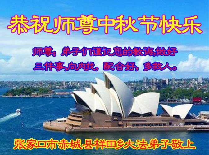 我们要在最后的时间里,努力做好三件事,精進实修,跟师父回家。 河北廊坊市电力局学法小组大法弟子祝师尊中秋节日快乐!