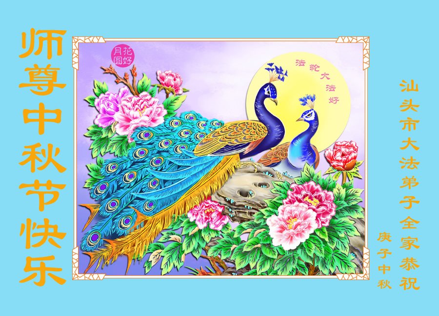 谨代表广州市一学法小组大法弟子及一家三口大法弟子恭祝师尊中秋节快乐!感恩师尊慈悲救度! 广东省汕头市大法弟子全家恭祝师尊中秋节快乐!