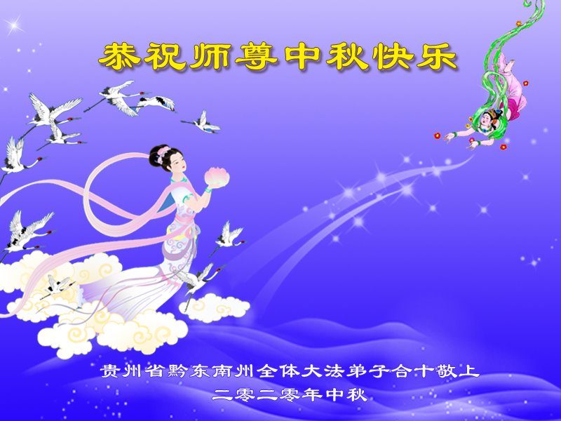 在传统节日中秋佳节来临之际:我们贵州大法弟子向我们最伟大慈悲的师尊祝贺中秋快乐! 师父辛苦了,谢谢师父!谢谢师父!谢谢师父! 贵州省大法弟子敬上 庚子年八月十三日 贵州省黔东南大法弟子恭祝师父中秋快乐!