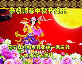 辽宁抚顺市新宾县张姓一家三代大法弟子恭祝师尊中秋节好!
