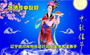 辽宁抚顺市新宾县榆树乡全体大法弟子恭祝师尊中秋节好!