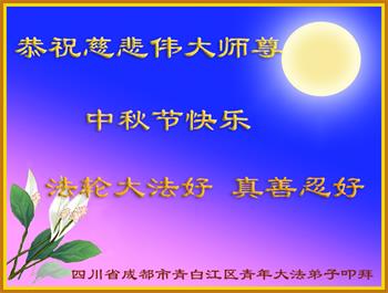四川省成都市青白江区青年大法弟子恭祝慈悲伟大的师尊中秋节快乐!