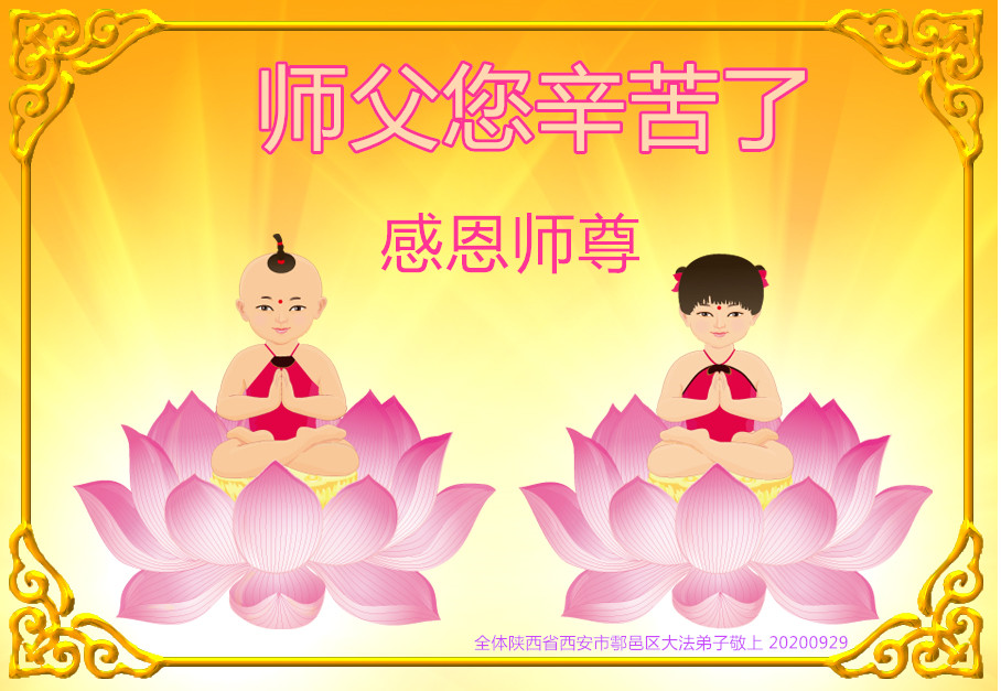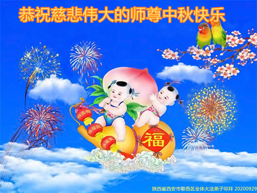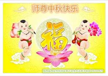 陕西西安鄠邑区大法弟子恭祝慈悲伟大的师尊二零二零年中秋快乐!