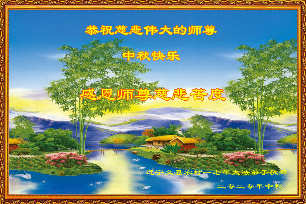 慈悲伟大的恩师: 中秋节到了,弟子想念师父,感恩师父的慈悲救度,您为弟子承受的太多太多……弟子的家人都得到了意想不到的福份啊,如果没有师父的慈悲救度,我那坎坷的一生、一切的一切都不堪设想,感恩的泪水在止不住的流。弟子定走好最后的修炼路,随师父回家。 长春市一老年女大法弟子跪拜 二零二零年九月三十日 辽宁抚顺市新宾县朝鲜族大法弟子恭祝师尊中秋节快乐!