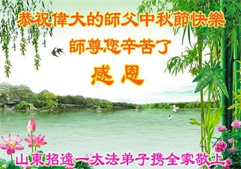 山东临沂大法弟子全家恭贺师父中秋好,感谢师尊慈悲救度!