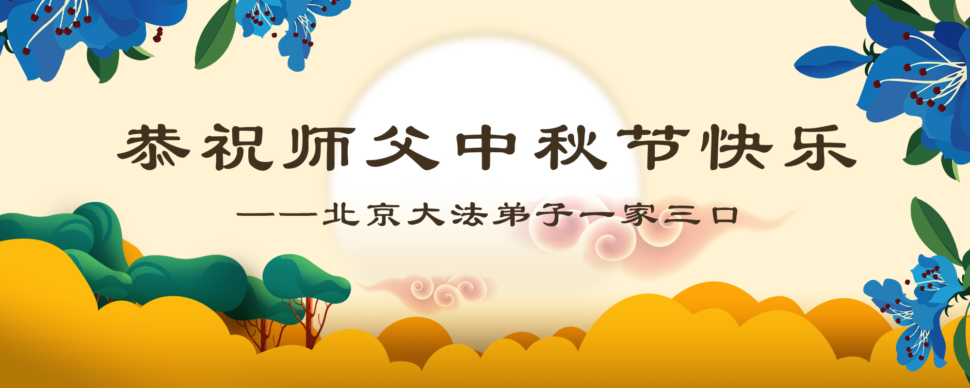 北京大法弟子一家三口恭贺师父中秋节快乐!