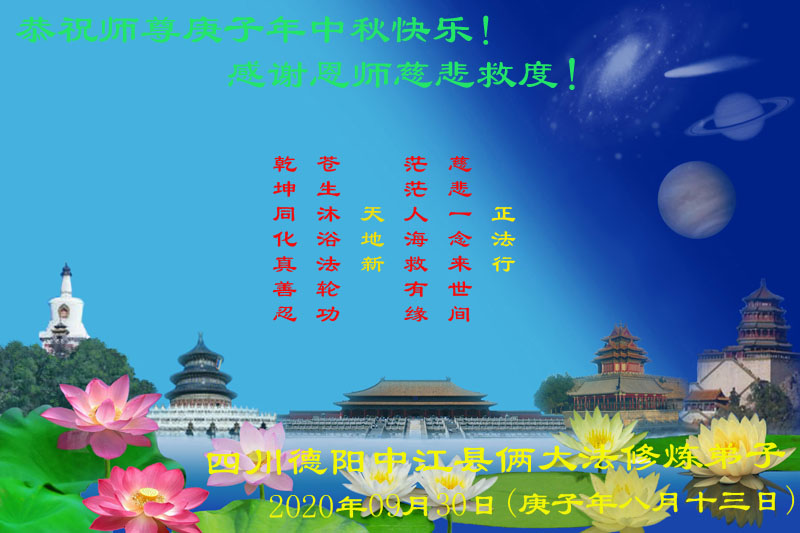 四川德阳中江县俩大法修炼弟子恭祝师尊庚子年中秋快乐!感谢恩师慈悲救度!