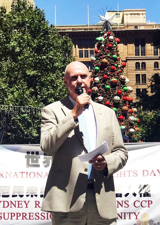 法轮大法澳大利亚佛学会发言人约翰·戴乐(John Deller)在集会上发言,他首先引用美国国务卿蓬佩奥(Mike Pompeo)在今年十月的声明:“对宗教自由未来最严重的威胁,是中共对所有信仰者的战争。”作为开场白。 戴乐先生接着表示:“共产主义对宗教有着病态的仇恨。中共摧毁各种信仰群体的目的是破坏人类与神的精神联系。中共试图根除法轮大法,是因为法轮大法教导人们真、善、忍是宇宙最根本的特性,她唤醒了中西方人民的精神意识。二十一年来,法轮大法修炼者帮助世人了解了法轮大法的善良美好和中共的邪恶本质。 目前,当澳洲的价值观和自由正受到中共露出其真面目的威胁关头,澳洲政府站出来反对中共的胁迫和欺凌是正确的。同样,为人权发声,终结中共对法轮功学员的迫害也是正确的。由此可见:惧怕中共,会导致对中共犯罪的姑息和共谋;明确与中共分离,就能避免与中共同归于尽。” 国际社会正义力量都联合起来 终结中共势不可当  图2:悉尼科技大学(UTS)中国研究学者冯崇义博士代表澳洲价值守护联盟在集会上发言 |