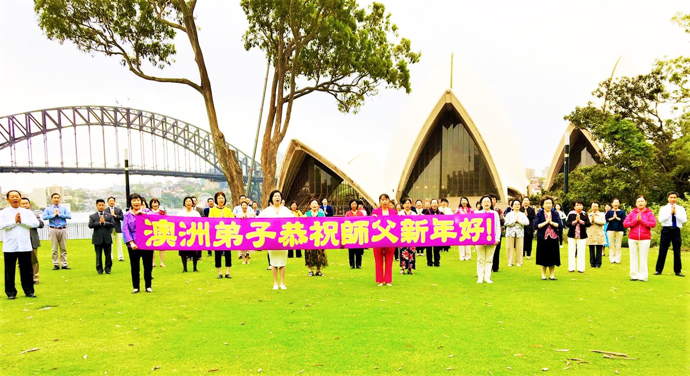 | 【明慧网二零二零年十二月二十八日】(明慧澳洲悉尼记者站报道)新年来临之际,澳大利亚悉尼法轮功学员分别来到悉尼歌剧院附近的皇家植物园(Royal Botanic Garden)和海德公园(Hyde Park),向远在美国的法轮大法创始人——慈悲伟大的李洪志师父恭贺新年快乐! 二零二零年十二月十九日上午,参加合影的各族裔悉尼大法弟子身着盛装,怀着无比感恩的心情双手合十恭颂:“澳大利亚悉尼大法弟子恭祝师尊新年快乐!法轮大法好!真善忍好!”  图1~2:悉尼部份大法弟子恭祝师尊新年快乐! |