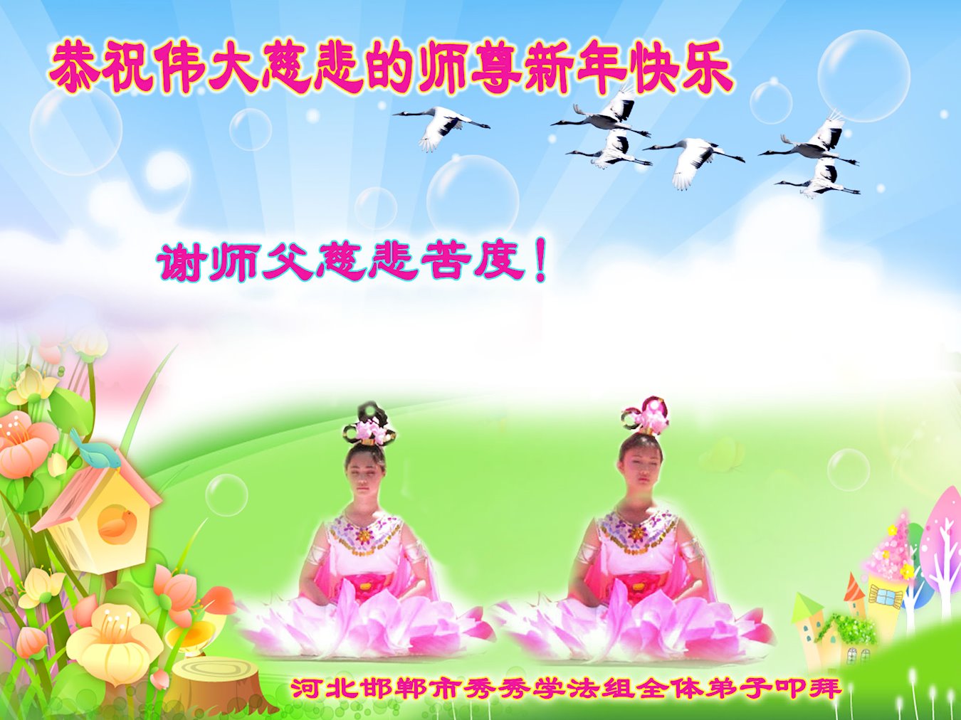 师尊您辛苦了!弟子一定精進实修,做好三件事,跟师父回家。 河北省邯郸市一学法组全体大法弟子恭祝师父新年快乐!
