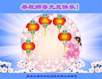 感谢慈悲伟大的师尊救度之恩,千言万语也说不尽对伟大师尊的感恩!弟子只有精進、实修,报答师尊的慈悲苦度,圆满随师还。弟子跪拜恩师! 黑龙江省东方红地区全体大法弟子恭祝师尊元旦快乐!