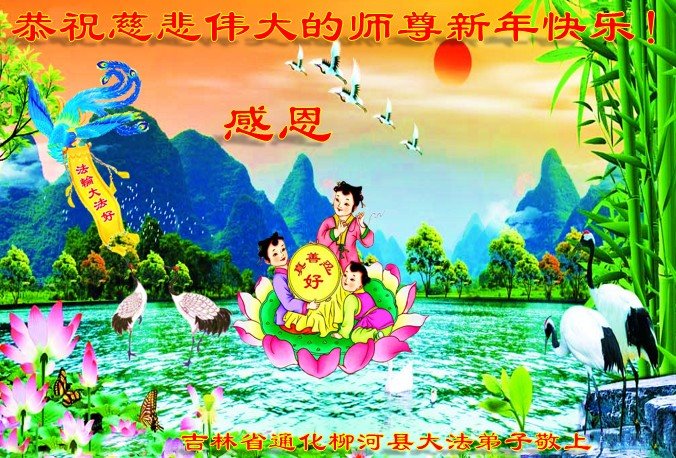 吉林省通化柳河县大法弟子恭祝慈悲伟大的师尊新年快乐!
