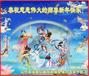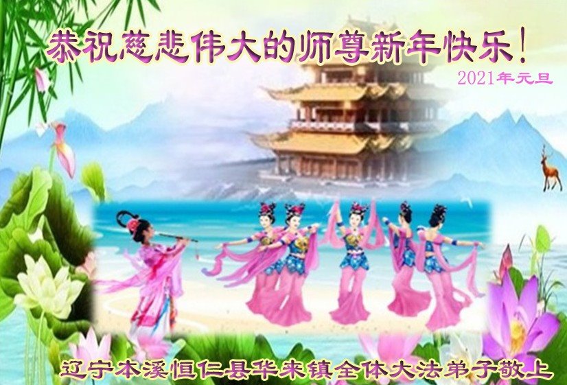 辽宁本溪恒仁县华来镇大法弟子恭祝慈悲伟大的师尊新年快乐!
