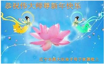 辽宁本溪大法弟子一家四口恭祝慈悲伟大的师尊新年好!