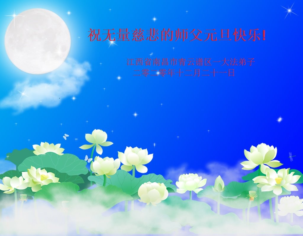 江西省南昌市经济开发区一大法弟子全家恭祝慈悲伟大的师父元旦快乐!