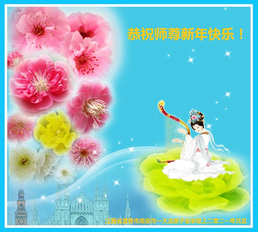 感谢师尊对弟子的慈悲保护!在新的一年里,弟子要多学法、向内找,尽力做好三件事。 江西省九江市浔阳区全体大法弟子恭祝师父2021年新年快乐!