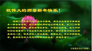 【明慧网二零二零年十二月三十一日】 吉林省延边州延吉市老年学法小组大法弟子恭祝师尊新年快乐!