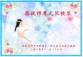 吉林省四平市伊通县一对夫妻大法弟子恭祝师尊元旦快乐!