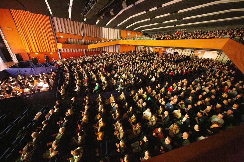 图2:二零二零年二月四日至六日,神韵巡回艺术团在“欧洲文化之都”比利时的布鲁日上演四场演出,场场大爆满。图为四日首场演出的盛况。 |