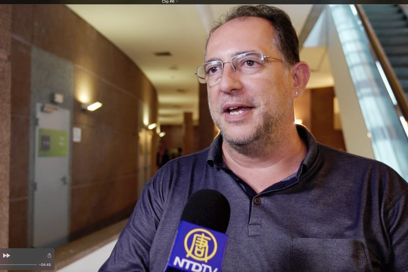 当天,帕特里克·德·莫蒂埃(Patrick de Mortier)和太太Catherine专程从比利时东部城市驾车两个小时来到布鲁日观看神韵。他说:“这是我们翘首企盼的演出,看完之后如愿以偿,非常高兴!” 德·莫蒂埃先生赞叹演出:“色彩那么美,充满光明,舞蹈、音乐都是那么美妙,太精彩了。”德·莫蒂埃太太赞同说,“演出美妙神奇,我们度过了一个非常非常美好的夜晚。” 巴西作曲兼指挥家:神韵作曲卓越 配器细节完美 二零二零年二月一日,拥有二十多年音乐创作与指挥经验的作曲兼指挥家Rodrigo Vitta观赏了神韵国际艺术团在巴西圣保罗Unimed Hall的演出后盛赞,“神韵的作曲非常卓越,音乐引领着整场演出。现场交响乐团的配器每个细节都非常完美,独奏、合奏烘托出的效果富有震撼力”。  图6:巴西资深作曲兼指挥家罗德里戈·维塔(Rodrigo Vitta)观赏了神韵国际艺术团在巴西圣保罗的演出后,盛赞神韵中西合璧的音乐非常完美。 |