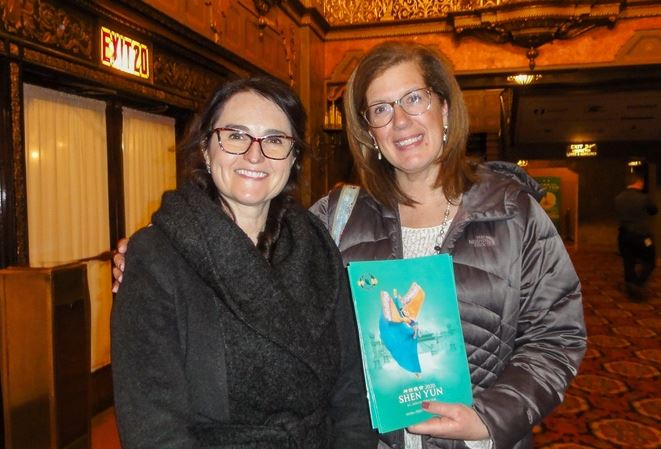 对于神韵展现中国传统文化的神性内涵,约翰·德德克尔表示:“展现了与众不同的思考角度,非常好,我感受到一种超常的能量。我喜欢这种纯真的理念,相信有更高层次生命的力量存在。神韵下次再来比利时,我绝对会再来看的。” 公司总裁:内涵非常深邃 震撼心灵 二零二零年二月四日,e-Cycle环境服务公司总裁兼首席营运官珍妮弗·迈尔斯(Jennifer Myers)(右)和朋友观赏了神韵新纪元艺术团在俄亥俄剧院(COLUMBUS Ohio Theatre)的首场演出后表示:“神韵演出非常精彩,是一场触及心灵的体验”。  图11:e-Cycle环境服务公司总裁兼首席营运官珍妮弗·迈尔斯(Jennifer Myers)和朋友观赏了神韵演出后表示,“神韵演出非常精彩”。 |